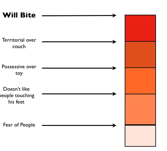 So, you see the chart I illustrated below? This is to give you an example of how a dog doesn’t normally “just bite” someone. Generally, when we actually break down the event, the dog’s background or temperament, and the sequence of events that led up the bite, we can see what actually occurred.